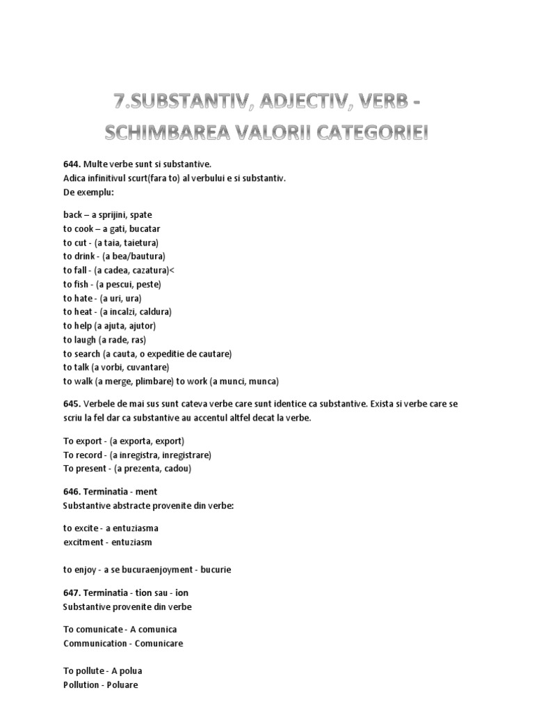 7 Substantivul Adjectivul Verbul Schimbarea Valorii Gramaticale