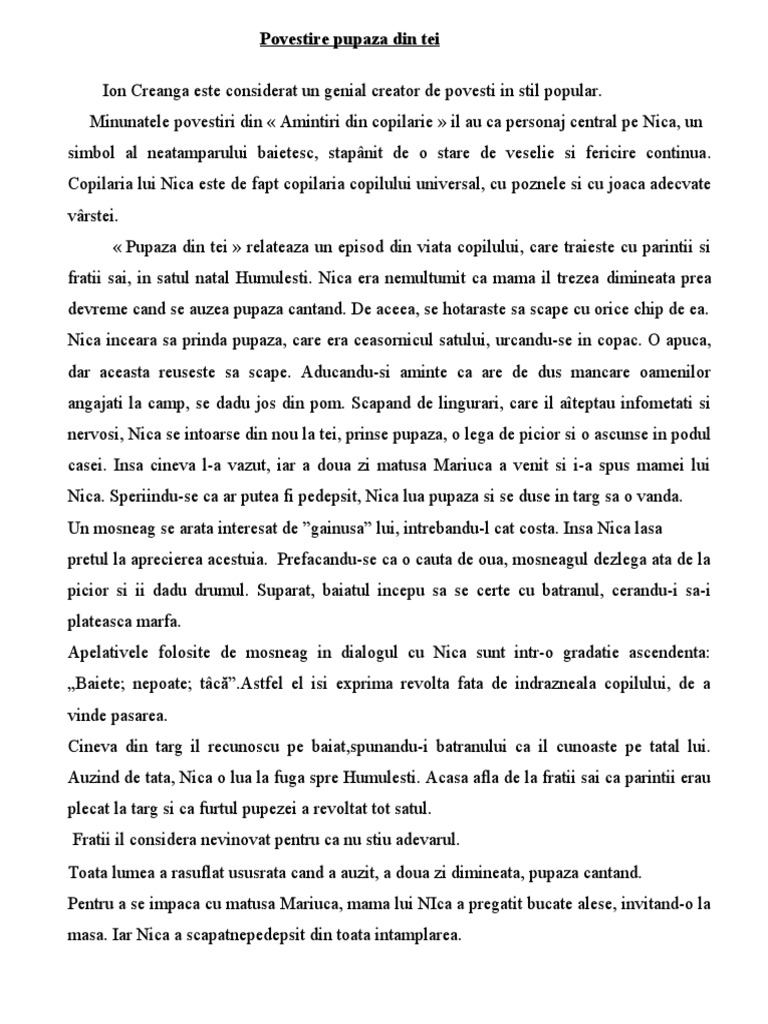 Amintiri Din Copilarie Pupaza Din Tei Rezumat