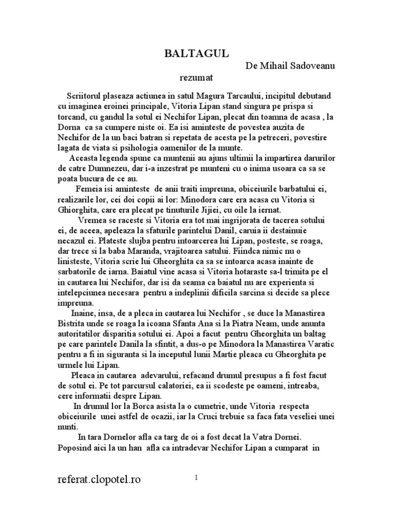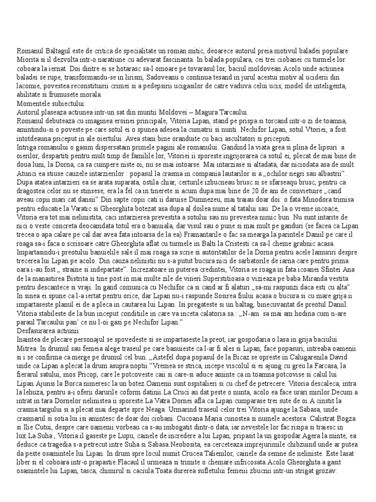 Baltagul Rezumat Pe Momentele Subiectului Www Referatele Org