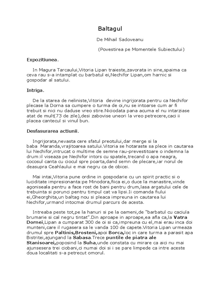 Baltagul De Mihail Sadoveanu Rezumat Pe Momentele Subiectului
