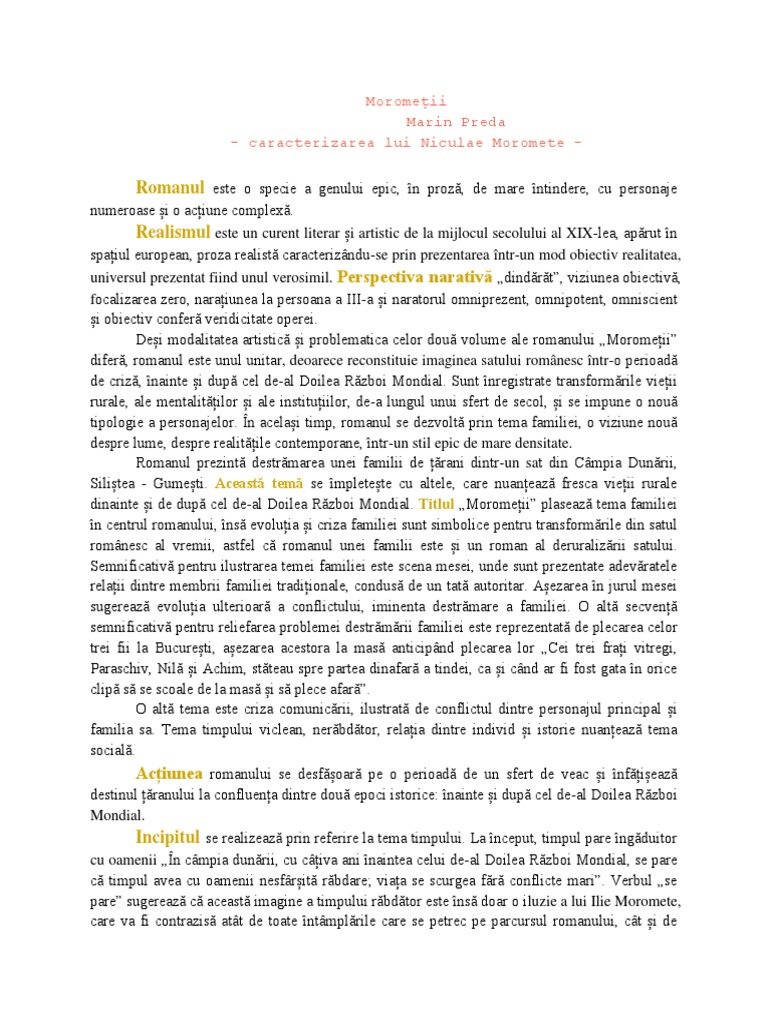 Doc Caracterizare Ilie Moromete Morometii De Marin Preda Elena Grigorescu Academia Edu