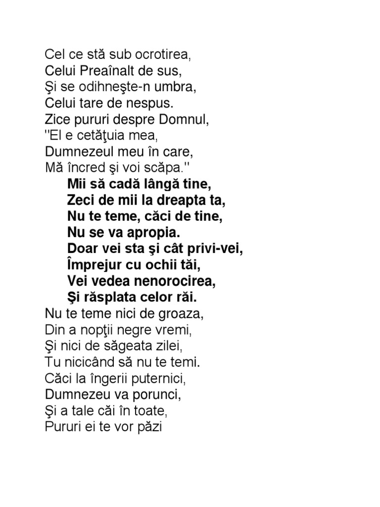 Cel Ce Stă Sub Ocrotirea Celui Preainalt Versuri Youtube