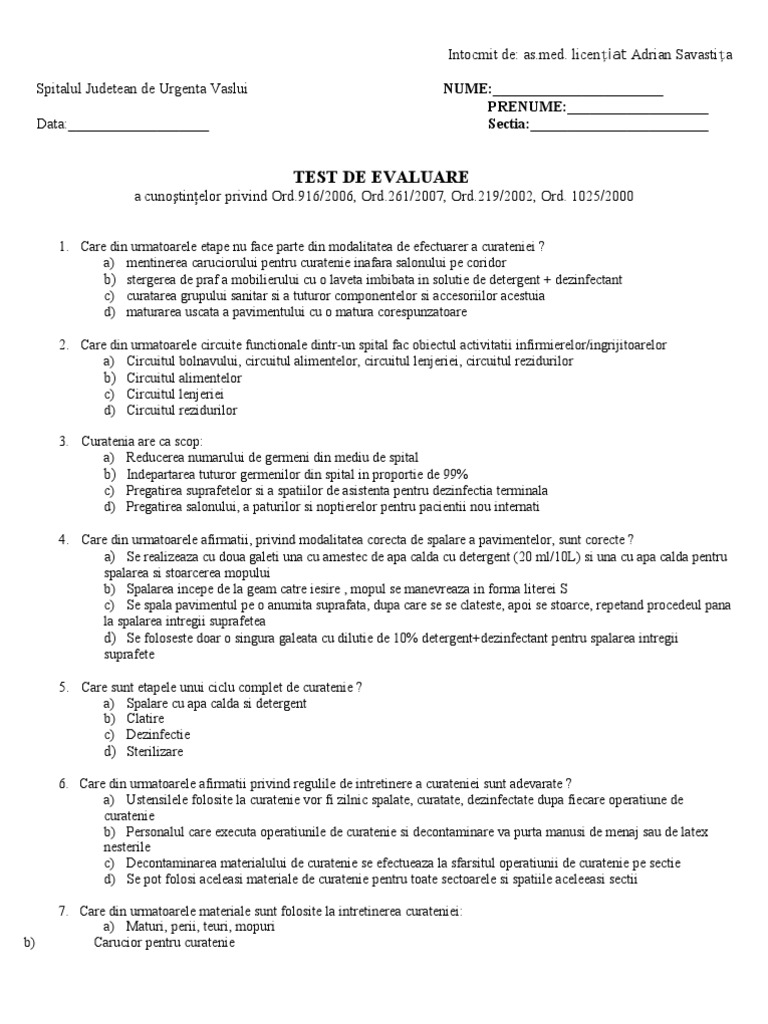 Test De Evaluare Infirmiere Savastita Adrian