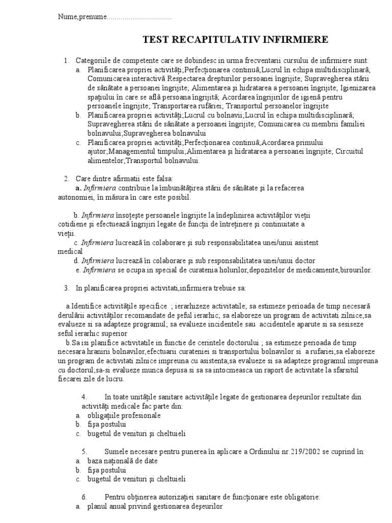 Teste Pentru Infirmieri Pdf