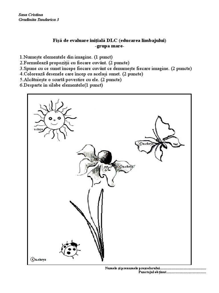 Fise De Evaluare Initiala Grupa Mare Educarea Limbajului