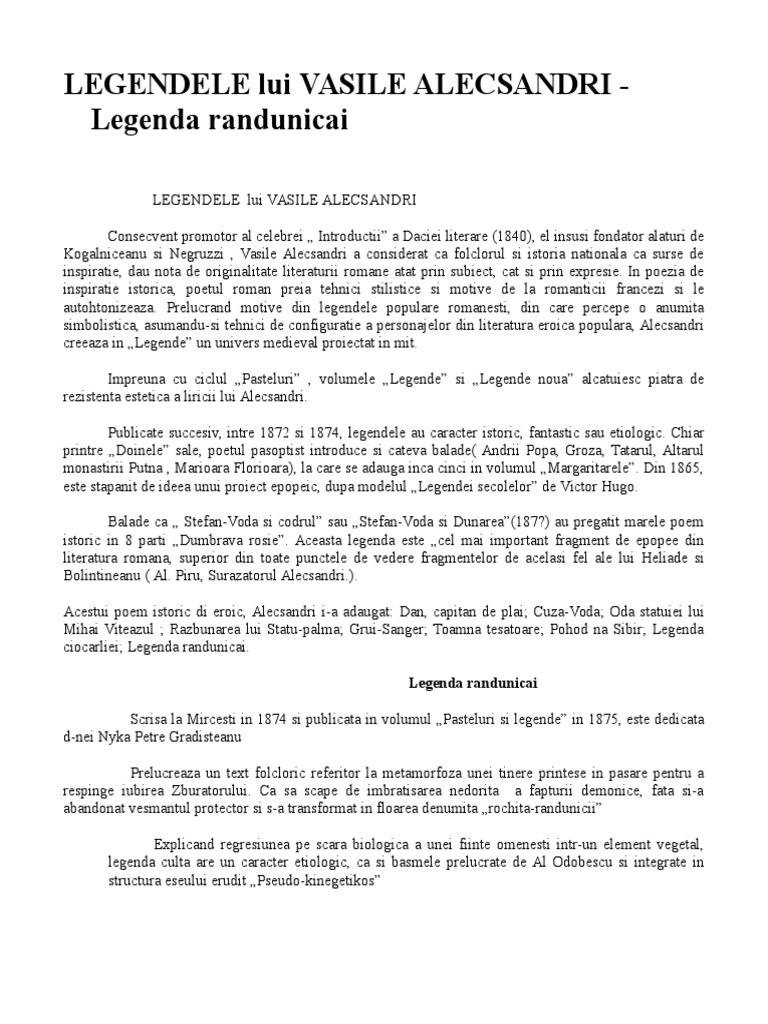 Legendele Lui Vasile Alecsandri Doc Document