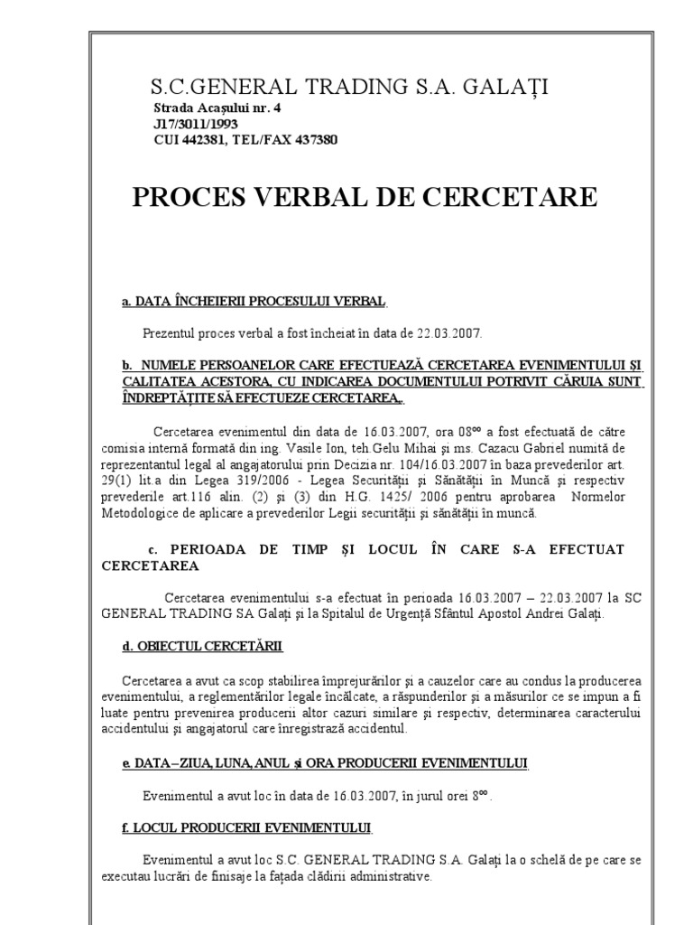 Procesul Verbal De Cercetare La Fata Locului Pdf Document