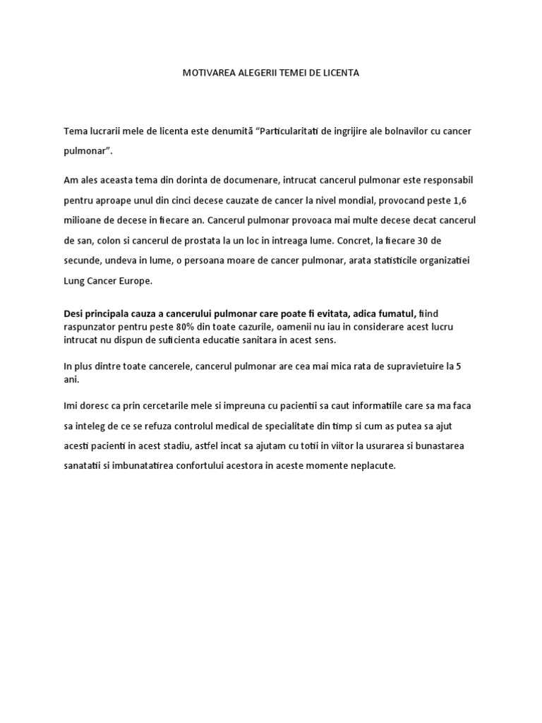 Motivatia Alegerii Temei De Licenta
