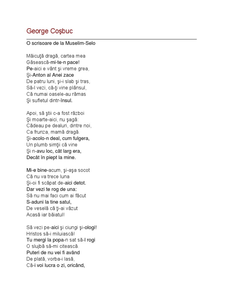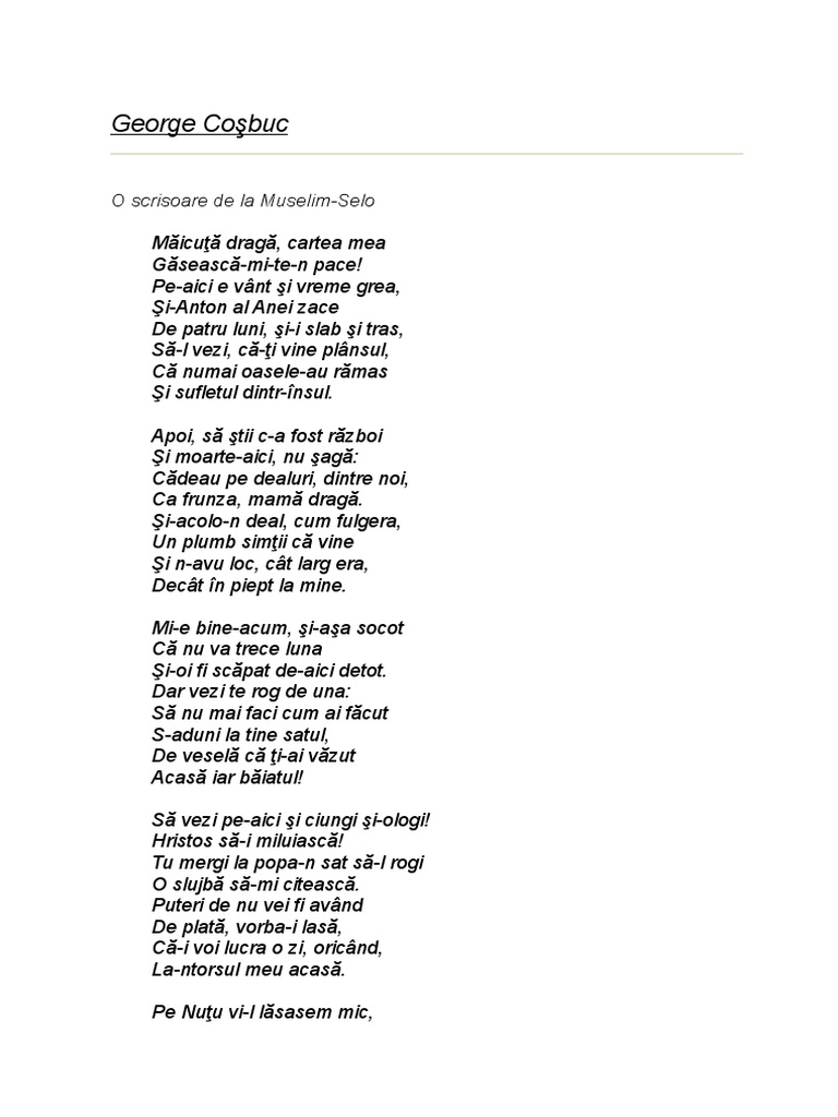 O Scrisoare De La Muselim Selo De George Cosbuc Anideșcoală Ro