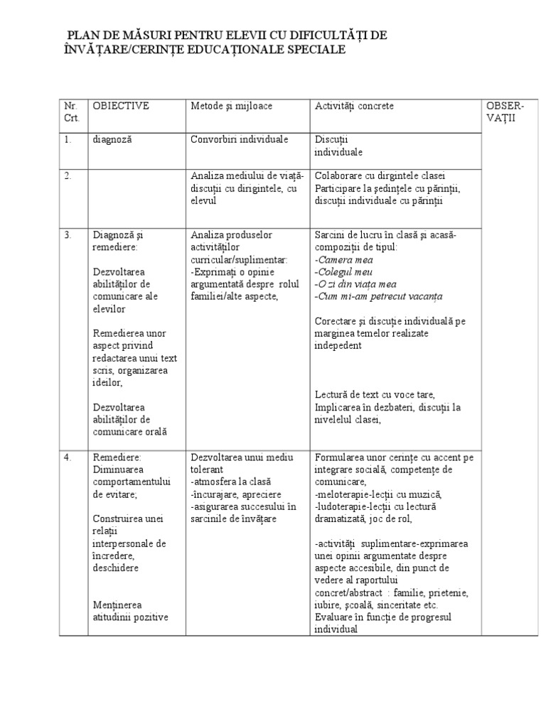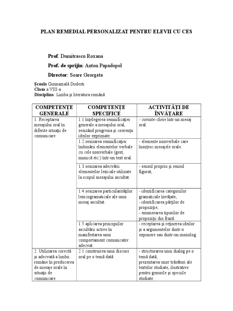 Plan Remedial Personalizat Pentru Elevii Cu Ces Doc