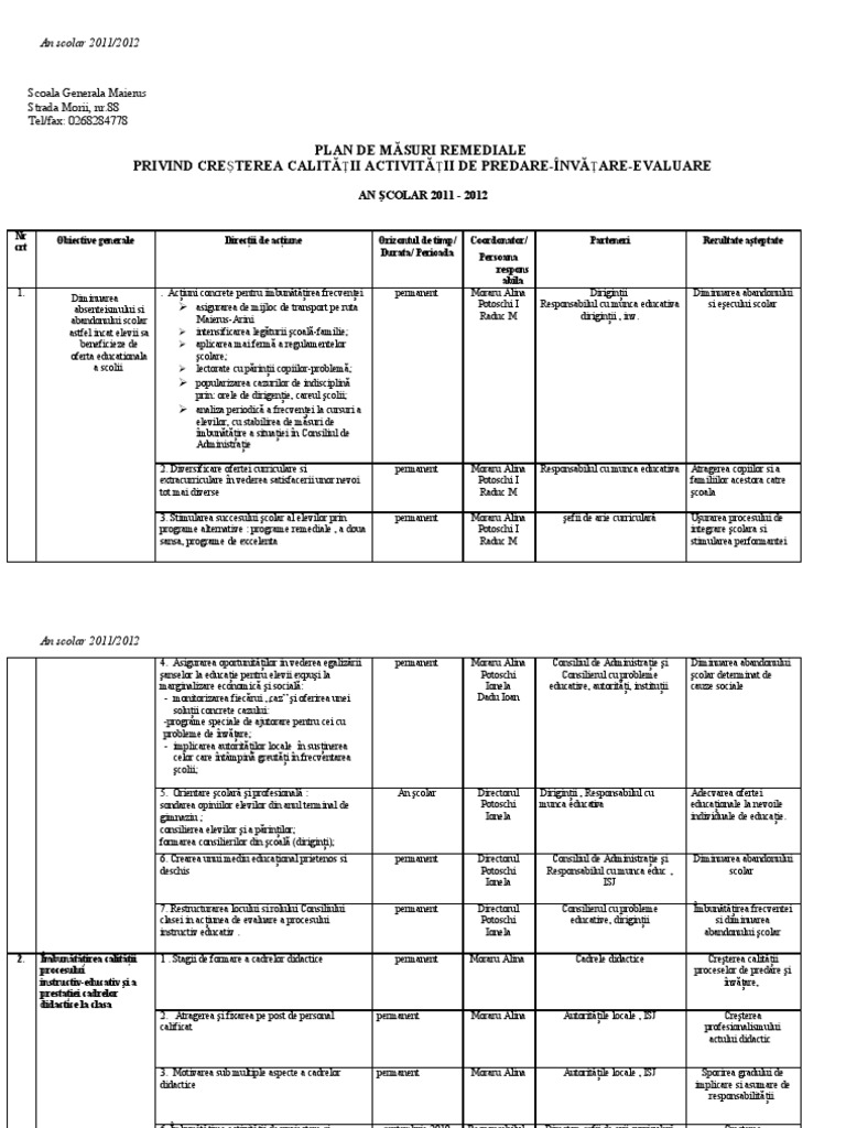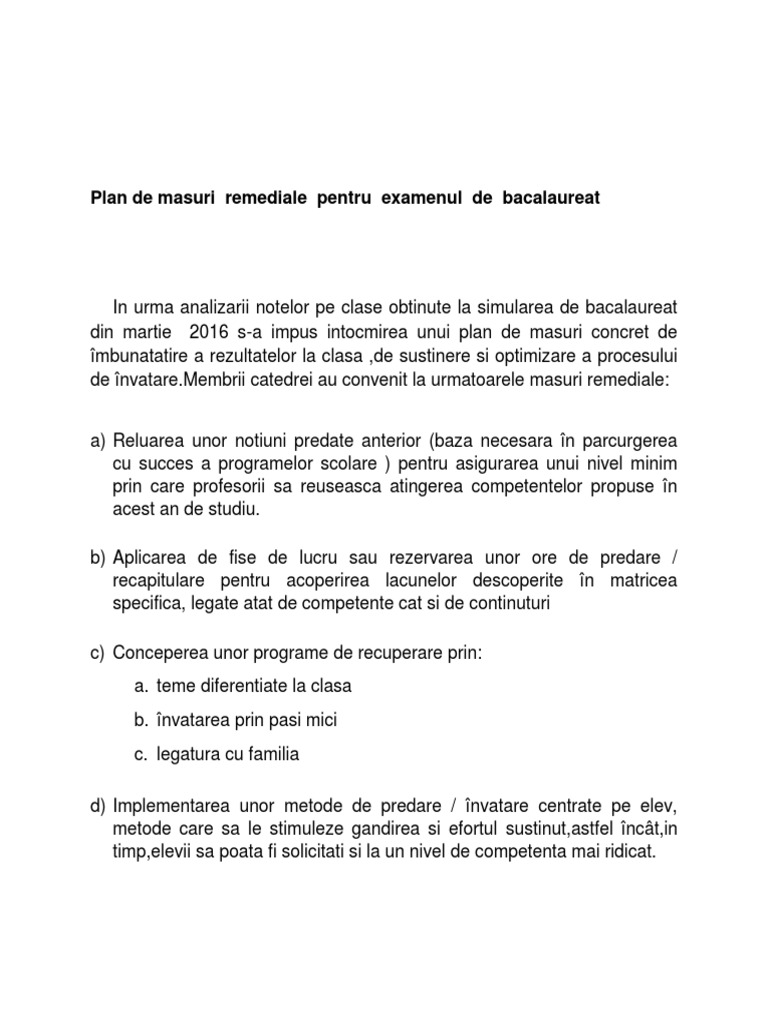 Https Liceulmaneciu Ro Wp Content Uploads 2018 04 Plan De Masuri Remediale Examene Nationale Pdf