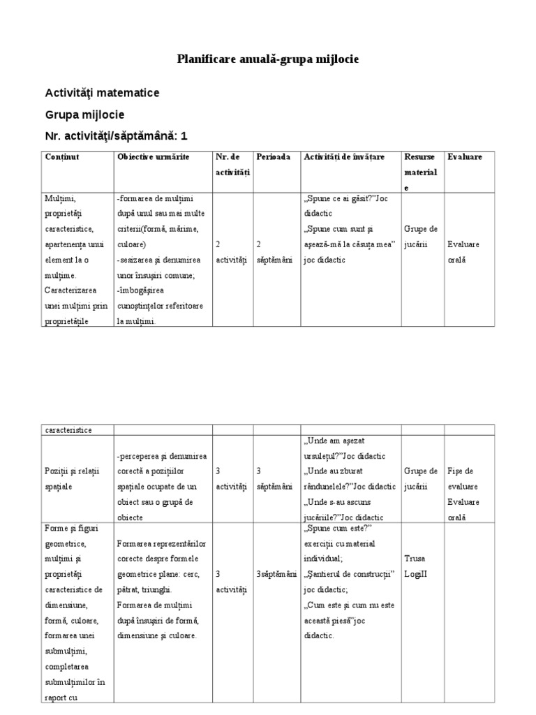 Planificare Anuala Grupa Mica