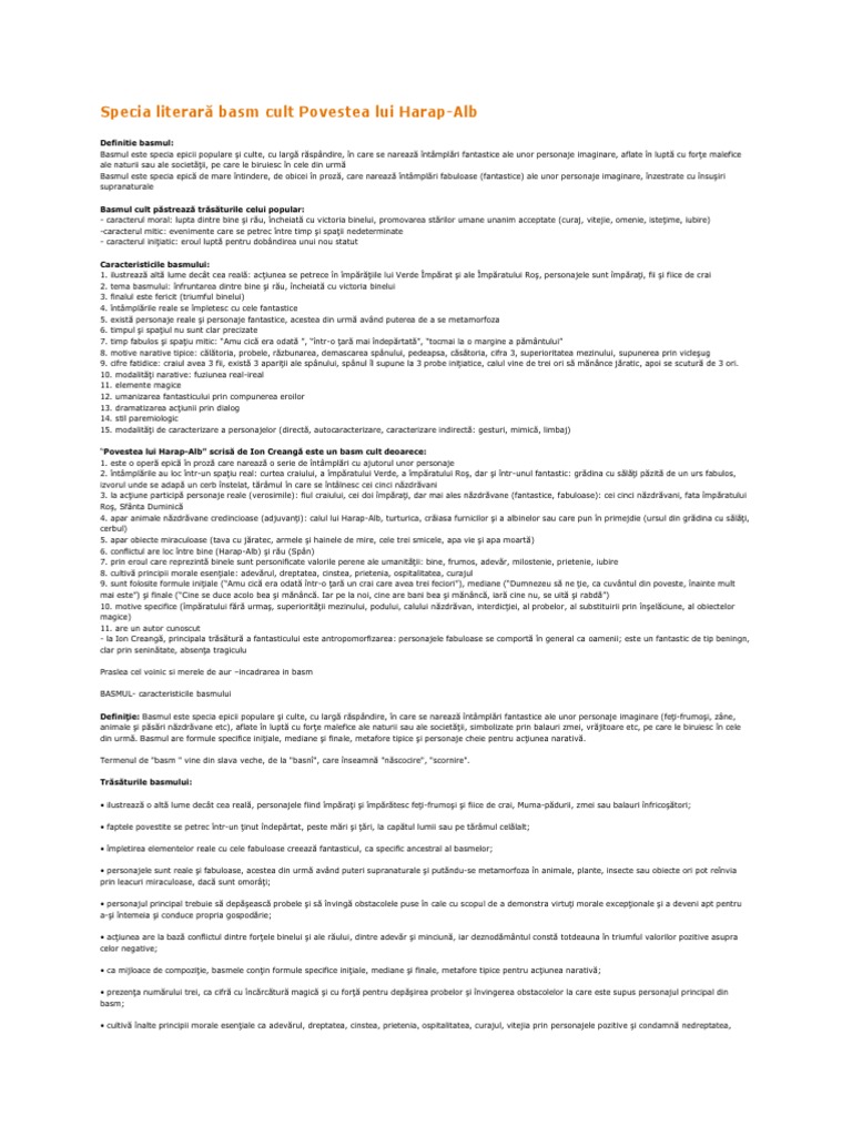 Specia Literară Basm Cult Povestea Lui Harap