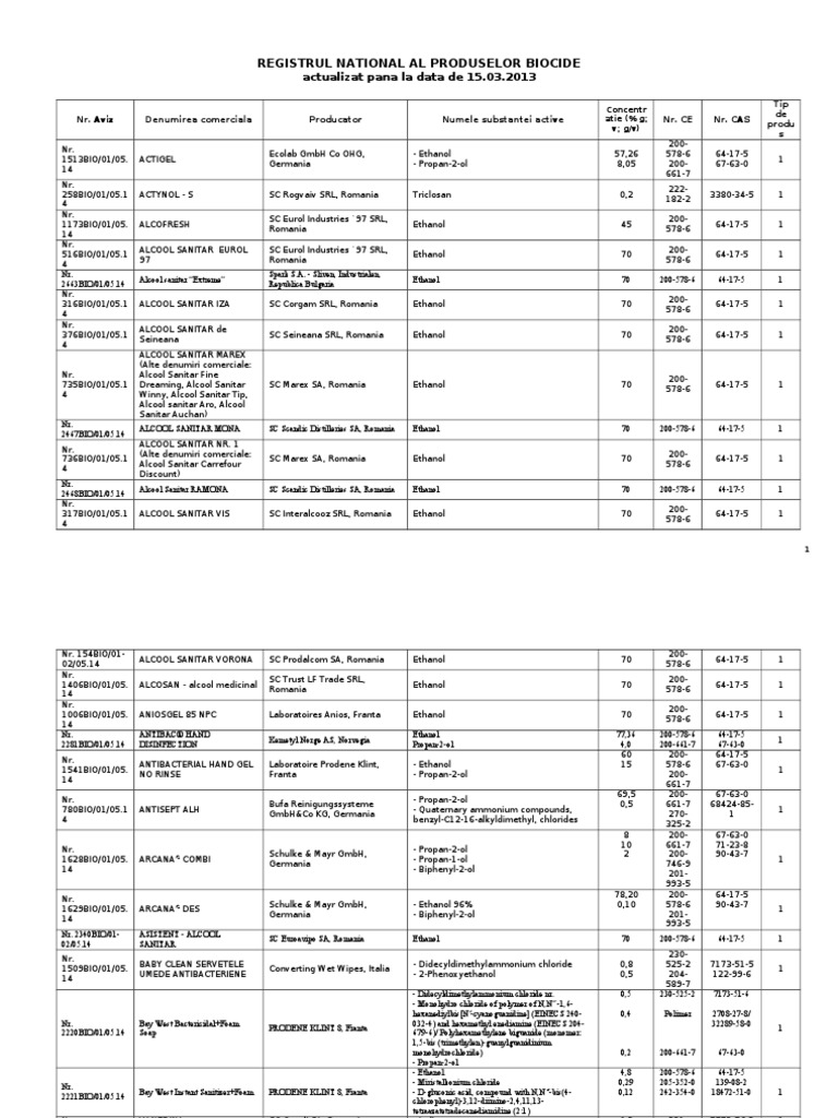 10 65 Registrul National Al Produselor Biocide Actualizat