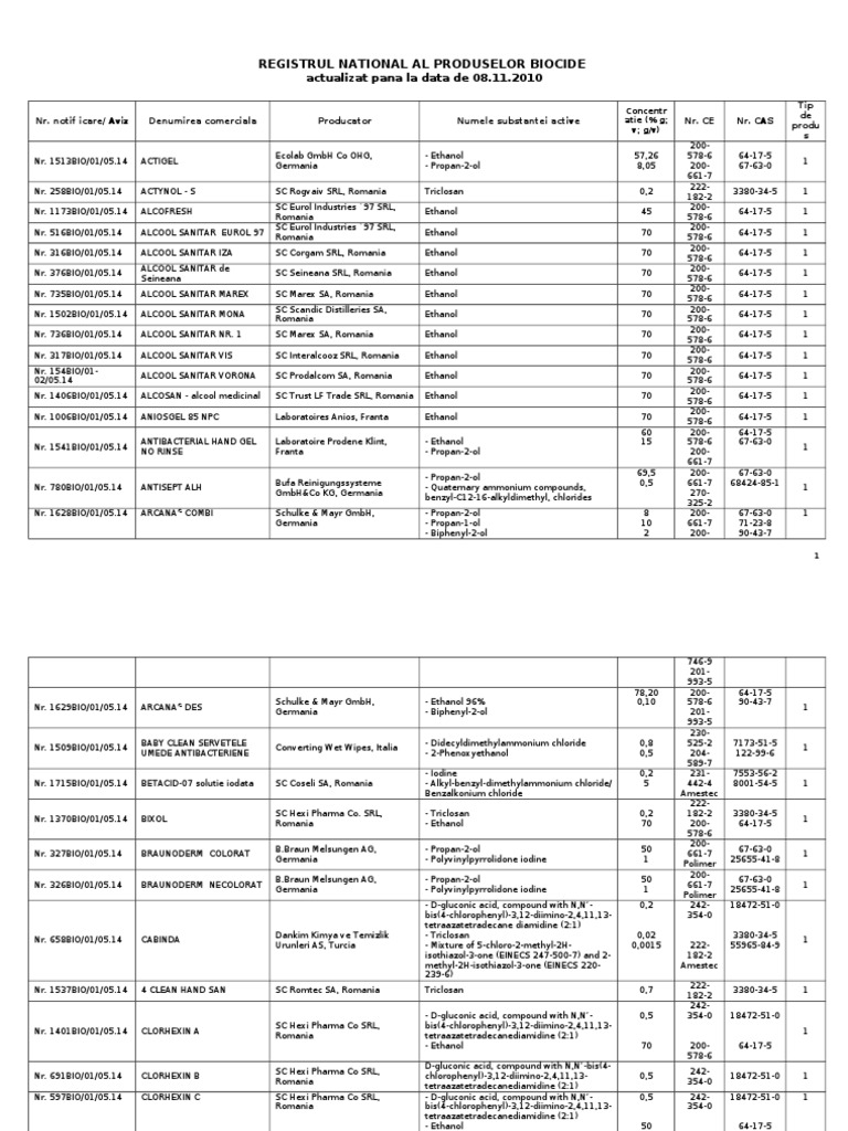 Registrul National Al Produselor Biocide Actualizat Pana La 10 Aprilie 2012 3233 7841