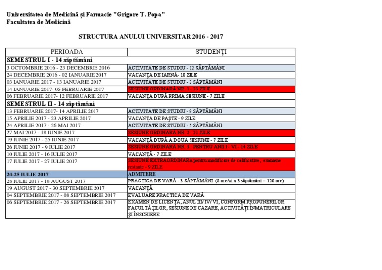 Structura Anului Universitar 2018 2019 Limba Romana Pdf